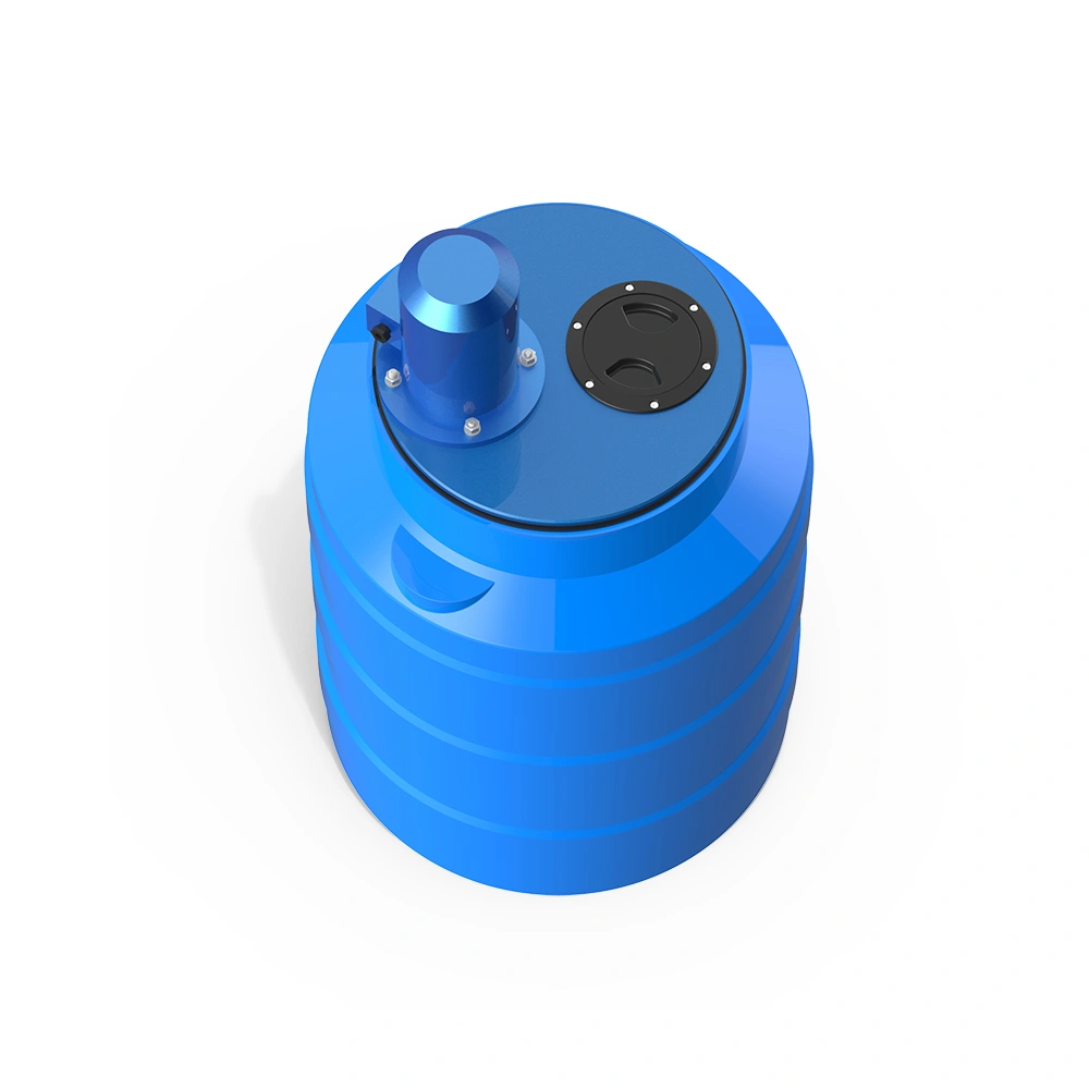 Ёмкость изготовлена из пищевого полиэтилена, устойчива к механическим нагрузкам и химически нейтральна. Крышка, вал и рабочее колесо выполнены из прочного композитного материала, что гарантирует надёжность и стойкость к агрессивным средам.