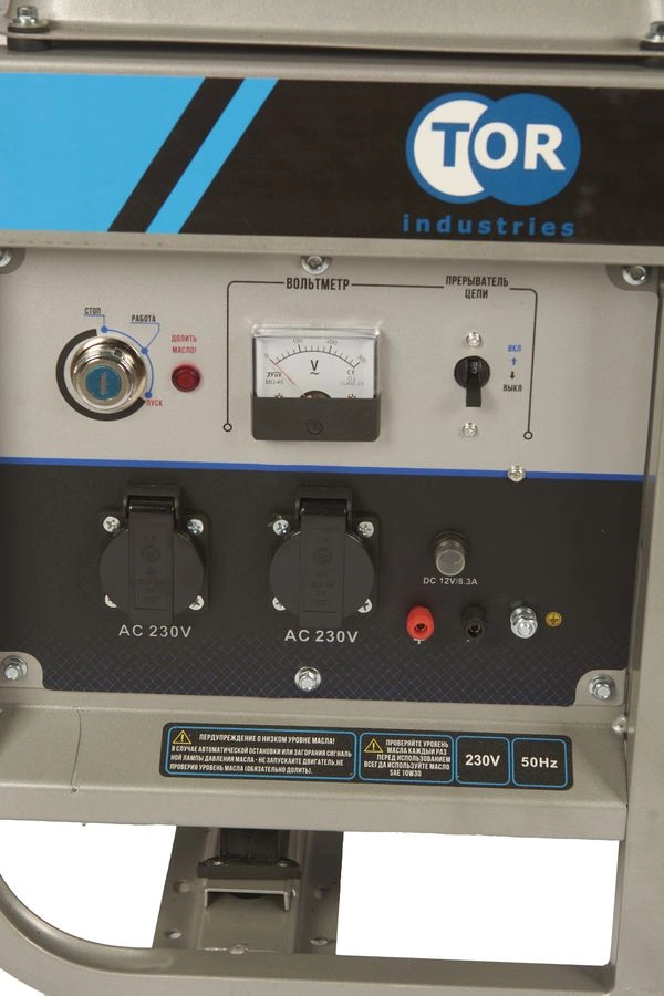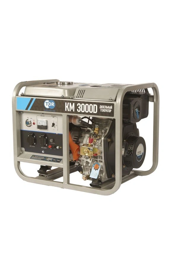 TOR KM3000D — мощный, экономичный и удобный дизельный генератор для дома, дачи и профессионального использования, где важны надежность, автономность и комфорт. Дизельный генератор TOR KM3000D — мощное и экономичное решение для резервного или автономного электроснабжения. Мощность 3,0 кВт позволяет одновременно питать бытовую технику, электроинструменты, освещение и оборудование в условиях отсутствия централизованной сети. Работает на дизельном топливе, что обеспечивает высокий КПД, длительный ресурс двигателя и низкий расход топлива по сравнению с бензиновыми аналогами. Оборудован двумя розетками 220 В, выходом постоянного тока 12 В и клеммой заземления для безопасной эксплуатации. Топливный бак объемом 15 литров обеспечивает до 10 часов работы без дозаправки (справочно). Электростартер с кнопочным запуском исключает физические усилия — запуск мгновенный, даже в холодную погоду. Где используется? Подходит для резервного питания жилого дома, квартиры, дачи, гаража, небольшой мастерской или кемпинга. Идеален для использования при отключении электроэнергии, во время поездок за город, на строительных объектах или в местах, где нет доступа к централизованной сети. Эффективен для питания холодильников, насосов, сварочных аппаратов, компрессоров, освещения и других устройств с суммарной мощностью до 3,0 кВт. Основные преимущества: - Дизельный двигатель — большой ресурс работы, реже требует обслуживания, устойчив к перегрузкам. - Высокий КПД — меньший расход топлива при одинаковой нагрузке по сравнению с бензиновыми моделями. - Медная обмотка альтернатора — эффективно отводит тепло, предотвращает перегрев и сохраняет мощность даже при пиковых нагрузках. - Индикаторы уровня топлива и масла — удобство контроля и своевременного обслуживания. - Прочная рама — защищает основные узлы от повреждений при работе и транспортировке. - Две розетки 220 В — возможность подключения нескольких потребителей одновременно. - Выход постоянного тока 12 В — подходит для зарядки аккумуляторов, питания автомобильных устройств. - Увеличенный топливный бак 15 л — обеспечивает длительную автономную работу без дозаправки. - Клемма заземления — гарантирует безопасность при эксплуатации. - Электростартер — мгновенный запуск одним нажатием кнопки, работает в любых погодных условиях. - Надежность и долговечность — соответствует требованиям безопасности и прошел строгий контроль качества.
