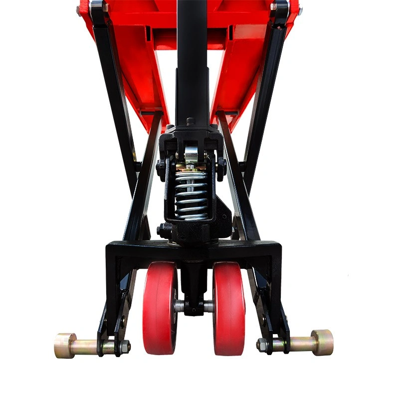 Благодаря телескопической конструкции гидроцилиндра, снижены габариты и масса тележки, что значительно повышает удобство ее эксплуатации. Ручка со специальным покрытием делает управление тележкой комфортным в любое время года. При подъеме вил на высоту 400 мм на землю опускаются дополнительные опоры, препятствующие перемещению тележки и повышающие ее устойчивость.