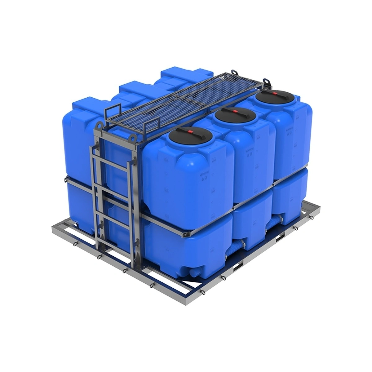 безопасная транспортировка: прочная обрешетка надежно фиксирует емкости, предотвращая их смещение в любом направлении, а низкий центр тяжести всей кассеты обеспечивает повышенную устойчивость транспортного средства в пути;