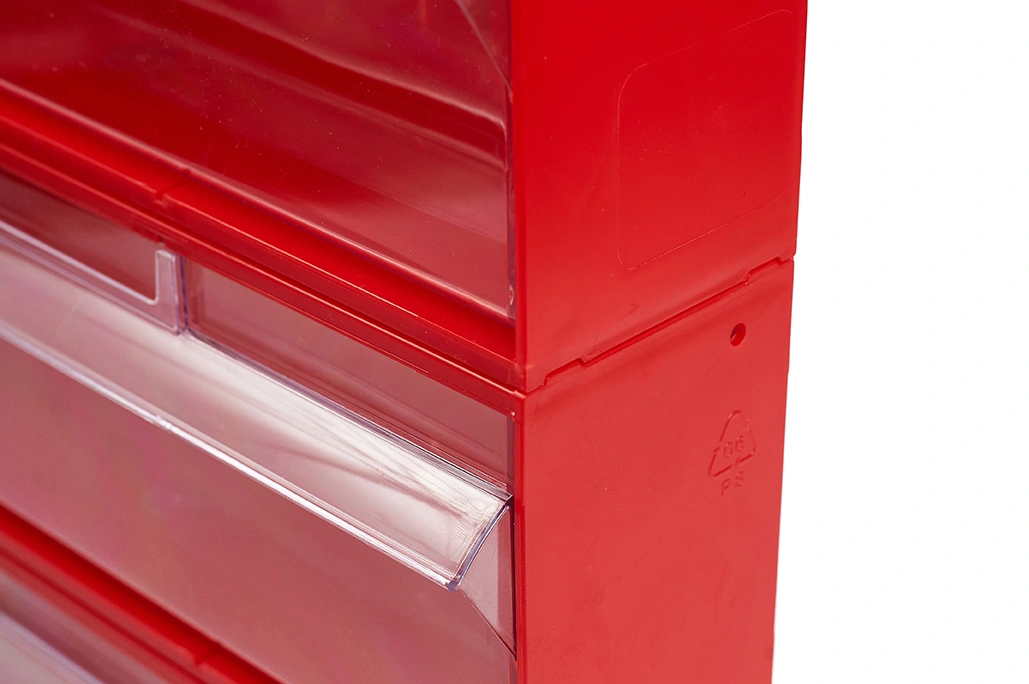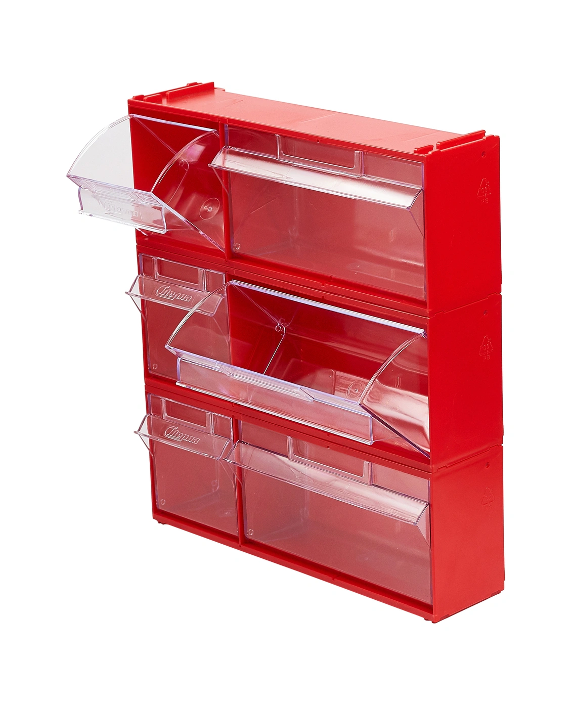 Короб откидной Стелла-техник F-300-2 (300х96х112мм.), красный, прозрачный служит для хранения мелкоштучных предметов. Данная система хранения не подвержена случайному опрокидыванию. Откидные удлиненная и стандартная ячейки обеспечивают быстрый доступ к необходимым предметам. В случае необходимости полного высыпания или наполнения внутренние ячейки легко извлекается. Полезный внутренний размер ячеек 184х65х70мм. и 88х65х70мм. Специальный пластик, из которого выполнен короб, выдерживает значительные нагрузки и обладает оптимальной эластичностью. На основе данных коробов можно сформировать многоярусную систему хранения, выстраивая вертикально. Данный короб, через отверстия на задней стенке, легко можно прикрепить к стене или установить на специальные кронштейны (Артикул: Кронштейны-FOX-750). Обзорность содержимого сквозь прозрачные внутренние ячейки, наличие отсека для информационных бирок, легкое извлечение внутреннего короба для опустошения и наполнения, все это является неоспоримым преимуществом откидных коробов серии F. Температура эксплуатации от -10 до +70С.