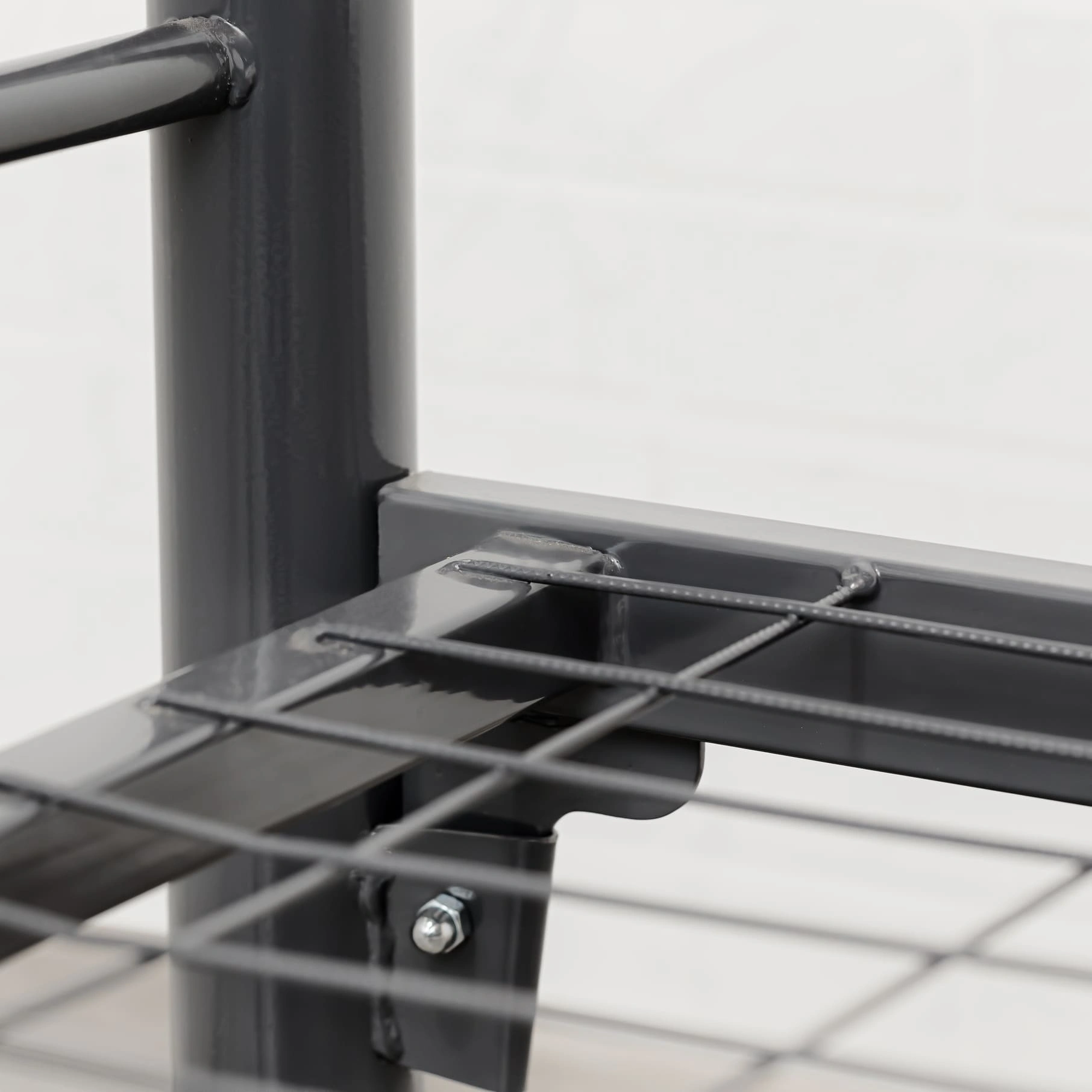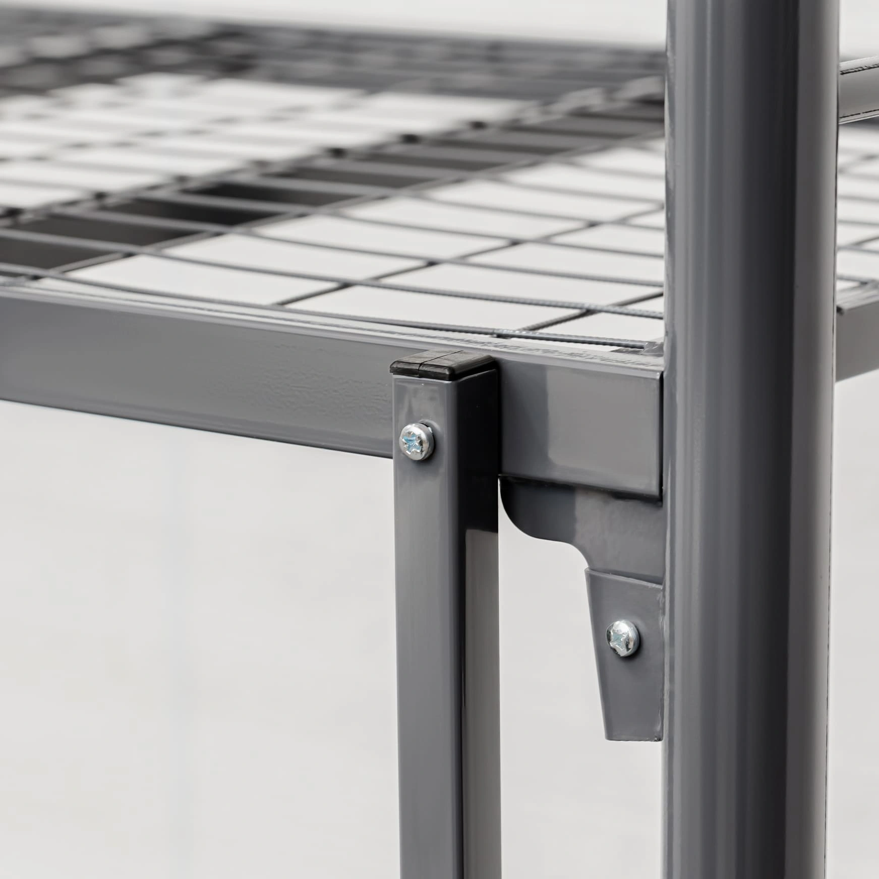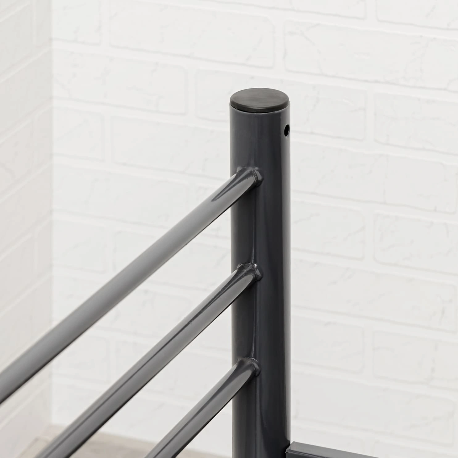 Спинки кровати выполнены в виде двух вертикальных колонок из круглых труб, диаметром Ø51 мм. и объединяющих их, трёх стяжек горизонтальных из труб круглого сечения Ø20 мм. Колонки объединены сваркой. Спинки в сборе имеют "П" - образную форму. Ложе (Рама) - прямоугольной формы, состоит из двух несущих, горизонтальных прямоугольных труб 40х20 мм. и соединяющих их, приваренных - пяти усилителей поперечных из квадратных труб сечением 25х25 мм. Сверху, к несущим трубам и усилителям поперечным приварена сетка сварная металлическая 700х1900 мм. с ячейкой 50*100 мм. и диаметром проволоки Ø3 мм. Ложе и спинки жестко соединяются между собой при сборке, с помощью клиновых зацеплений (Клин+Петля) расположенных на раме и спинках, и изготовленных методом холодной штамповки из листовой стали. Клиновые соединения фиксируется винтами М6х16, шайбами 6 и гайками М6. Открытые крепёжные отв. Ø8 мм., торцы труб спинок и лестницы закрыты пластиковыми заглушками, предохраняющими покрытие пола от повреждений и в декоративных целях. Кровать имеет защитно-декоративное покрытие, стойкое к загрязнению и механическим повреждениям, выполненное порошковыми эпокси-полиэфирными красками в электростатическом поле. Покрытие обладает длительным сроком эксплуатации и является экологически чистым, соответствует ГОСТ 9.410-88. Цвет покрытия - по шкале RAL. Кровать поставляется в защитной упаковке, в разобранном виде. Соответствует нормативным требованиям и ГОСТ 19917-2014.