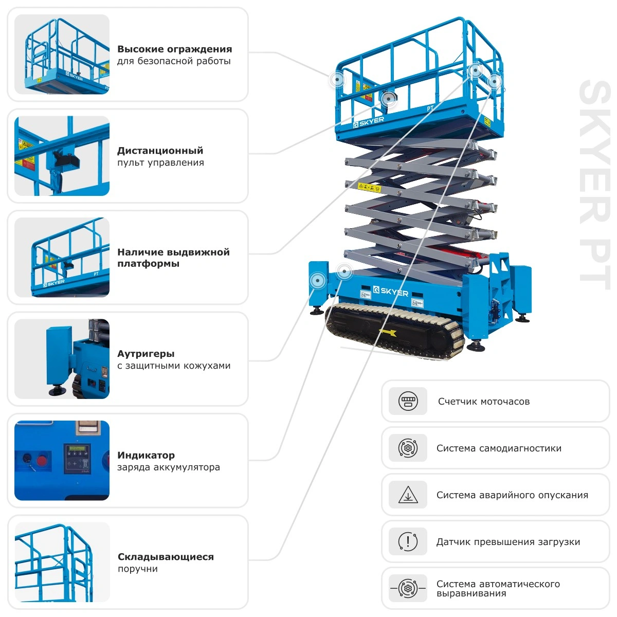 Гусеничный подъемник PT1045 — для работы на любой поверхности!