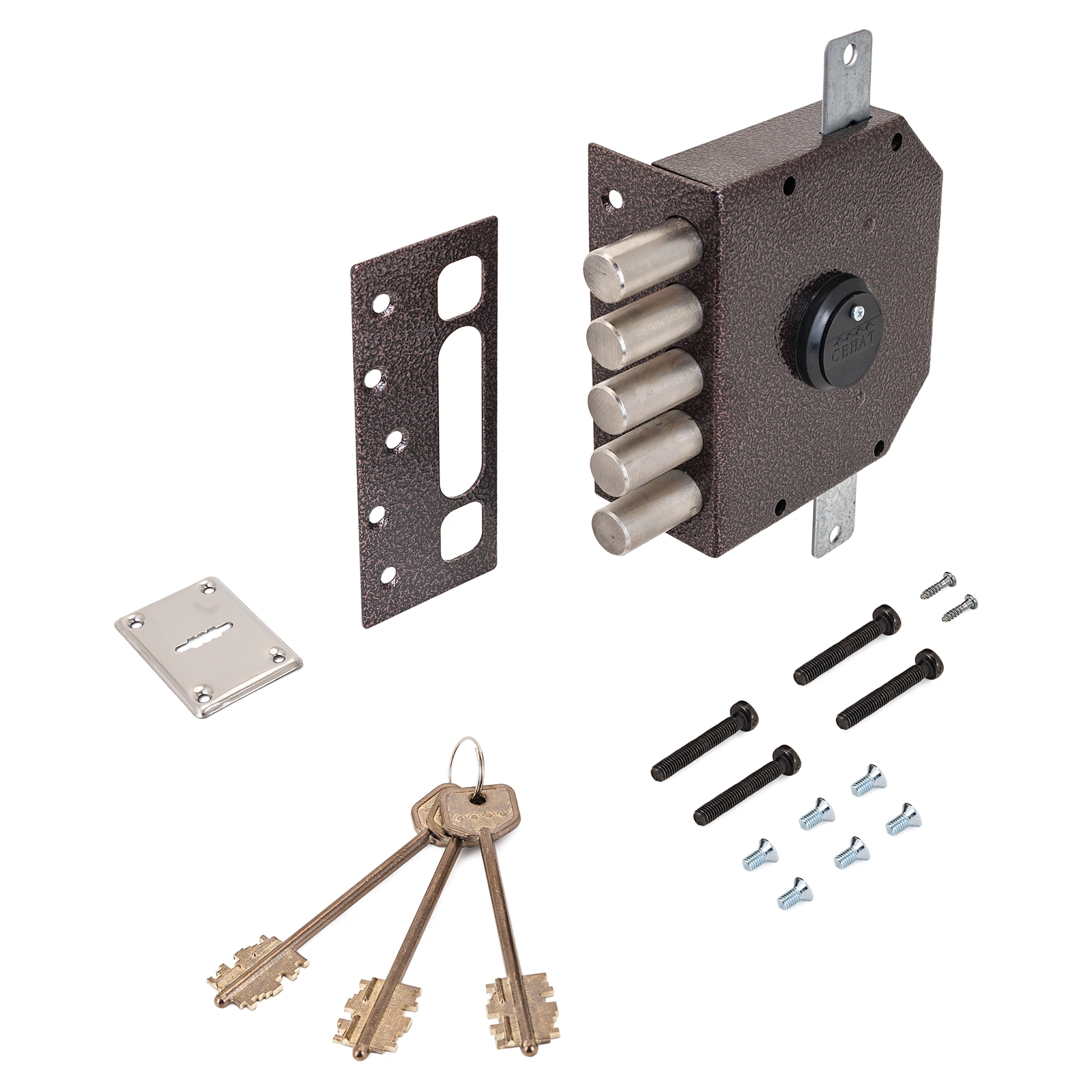Модель ЗНСТ-2"У" отличается от модели ЗНС-2"У" наличием двух вертикальных приводов, предназначенных для крепления тяг, при помощи которых дверь запирается в трех направлениях