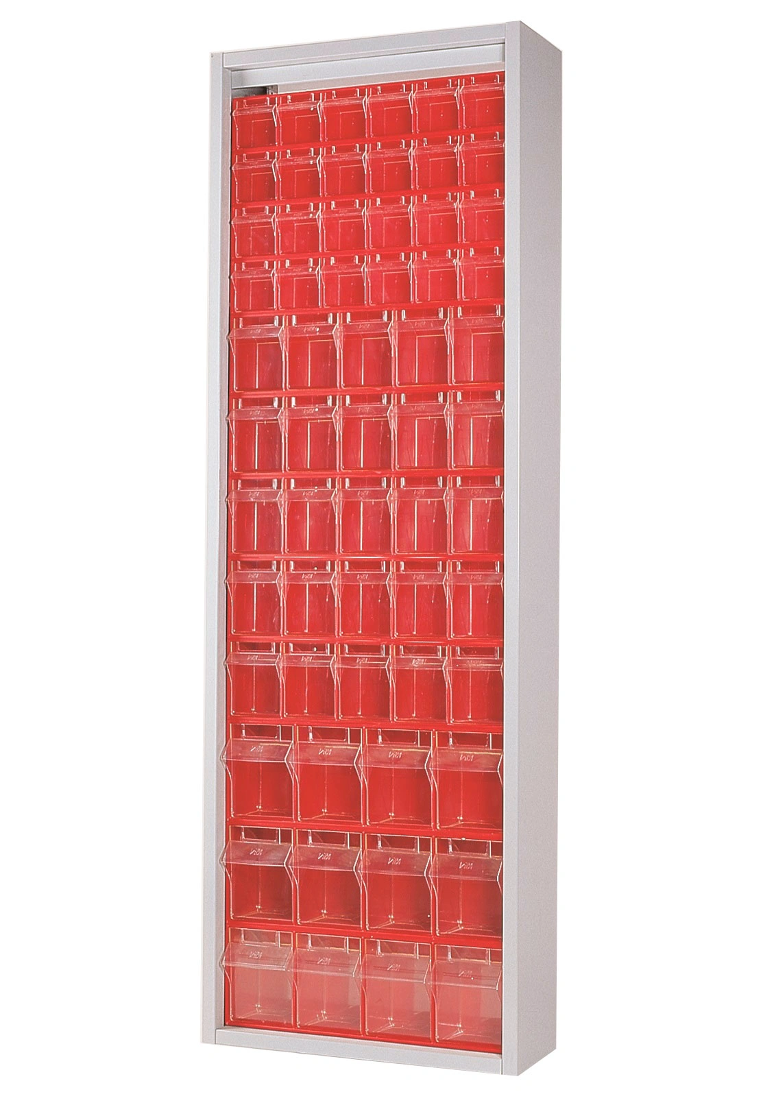 Шкаф открытый Стелла-техник V-420-00-04-05-03 (665х250х2000) представляет собой удобную систему хранения, на основе откидных коробов. Шкаф подойдет для выставочных залов, магазинов, офисов, складов. Благодаря боковым стенкам шкафа, существует возможность выравнивания коробов по передней лицевой плоскости, значительно улучшающий эстетический вид конструкции. Благодаря визуализации содержимого коробов, он отлично подходит для рекламирования и хранения мелкоштучной продукции в больших объемах. Комплектация: Шкаф FOX (665х250х2000) V-420, без коробов - 1 шт.; Короб откидной Стелла-техник F-600-6 , 600х96х112мм, 6 ячеек, красный, прозрачный - 4 шт.; Короб откидной Стелла-техник F-600-5 , 600х140х168мм, 5 ячеек, красный, прозрачный – 5 шт.; Короб откидной Стелла-техник F-600-4 , 600х178х206мм, 4 ячейки, красный, прозрачный – 3 шт.; Упаковка. Габаритные размеры V-420-00-04-05-03: высота 2000мм., ширина 665мм., глубина 250мм.