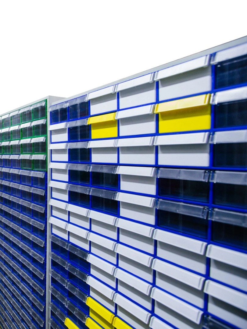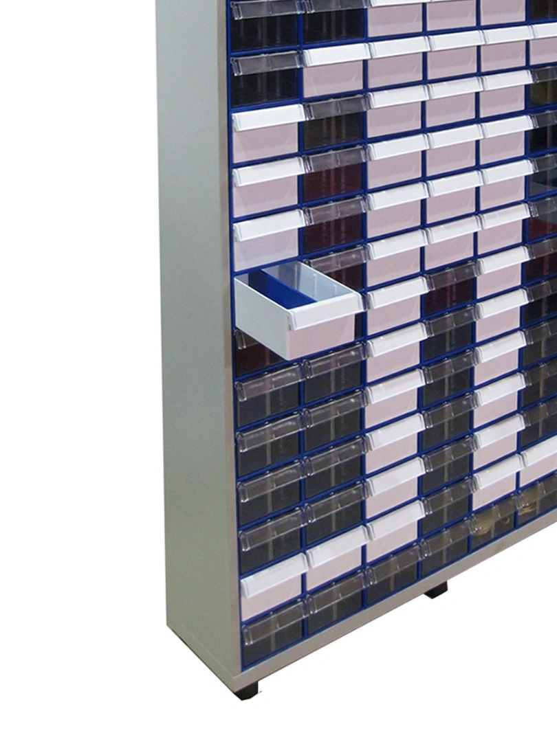 Шкаф в сборе Стелла-техник С-2-126 на 126 коробов (ЛДСП) отлично впишется в интерьер любого склада, подсобного или торгового и офисного помещения. Цвет ламинированного ДСП - серый. Цвет коробов С-2 синий, прозрачный. Главная особенность шкафа – объединение большого количества коробов с определенным типовым размером. Регулируемые ножки шкафа гарантируют устойчивость шкафа даже на неровных полах. Изделие допускает одновременное применение 126 пластиковых складских контейнеров. Прозрачные внутренние короба С-2 позволяют легко находить содержимое и контролировать полноту наполнения. Внутренний короб легко вынимается для опустошения или наполнения, по принципу спичечного коробка. Он имеет рельефную структуру днища и усиленные толстые стенки. За счет этого, изделие справляются с достаточно высокими эксплуатационными нагрузками. Внутренние полезные размеры выдвижного короба: 220х123х80мм. Имеется возможность установки: одной продольной перегородки (артикул: С-2 продольная) или до трех поперечных (артикул: С-2 поперечная). Продольная и поперечная перегородки одновременно не устанавливаются. Перегородки в комплект короба не входят и поставляются отдельно. Рекомендуемая нагрузка на короб, в составе шкафа, не более 2,3кг.