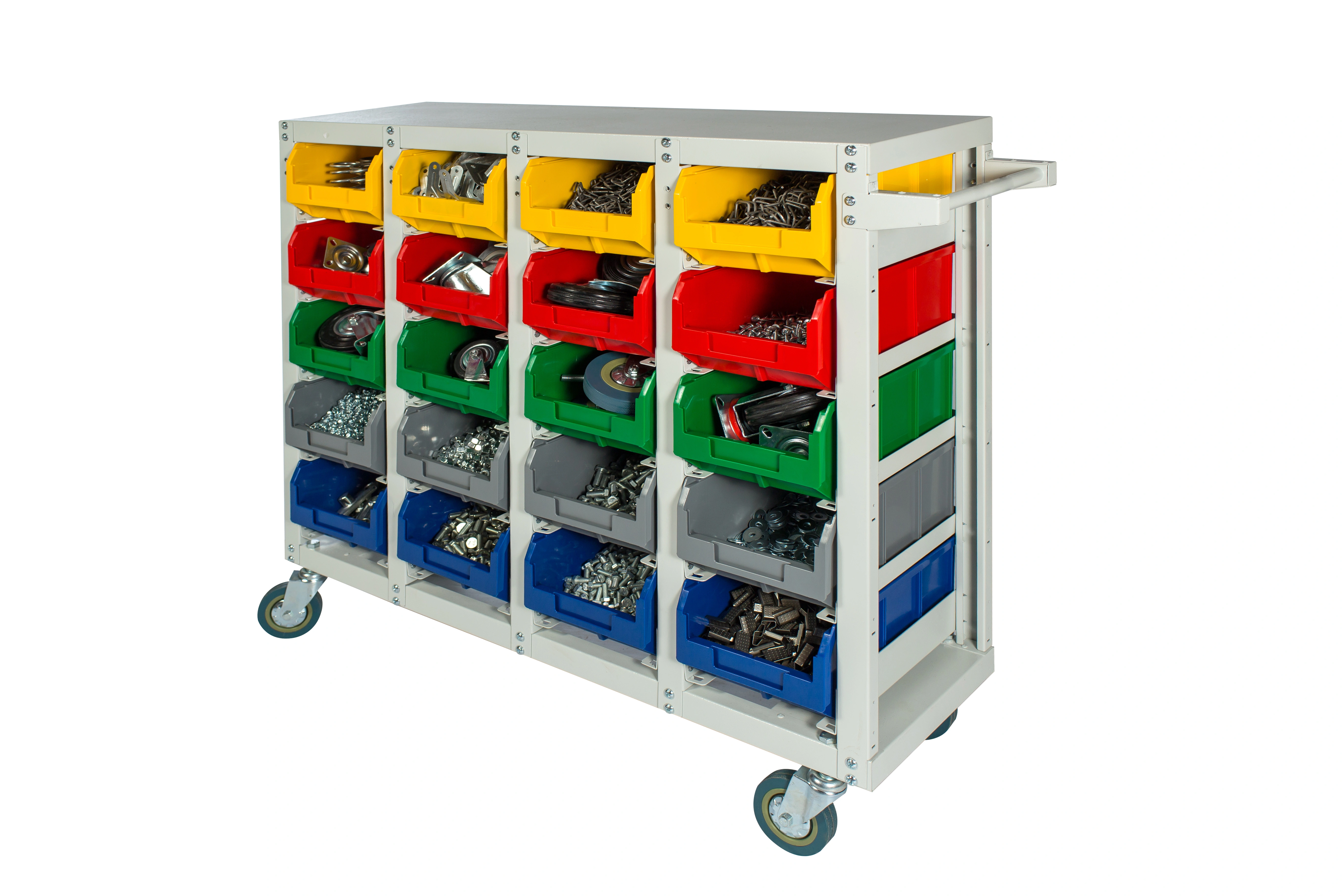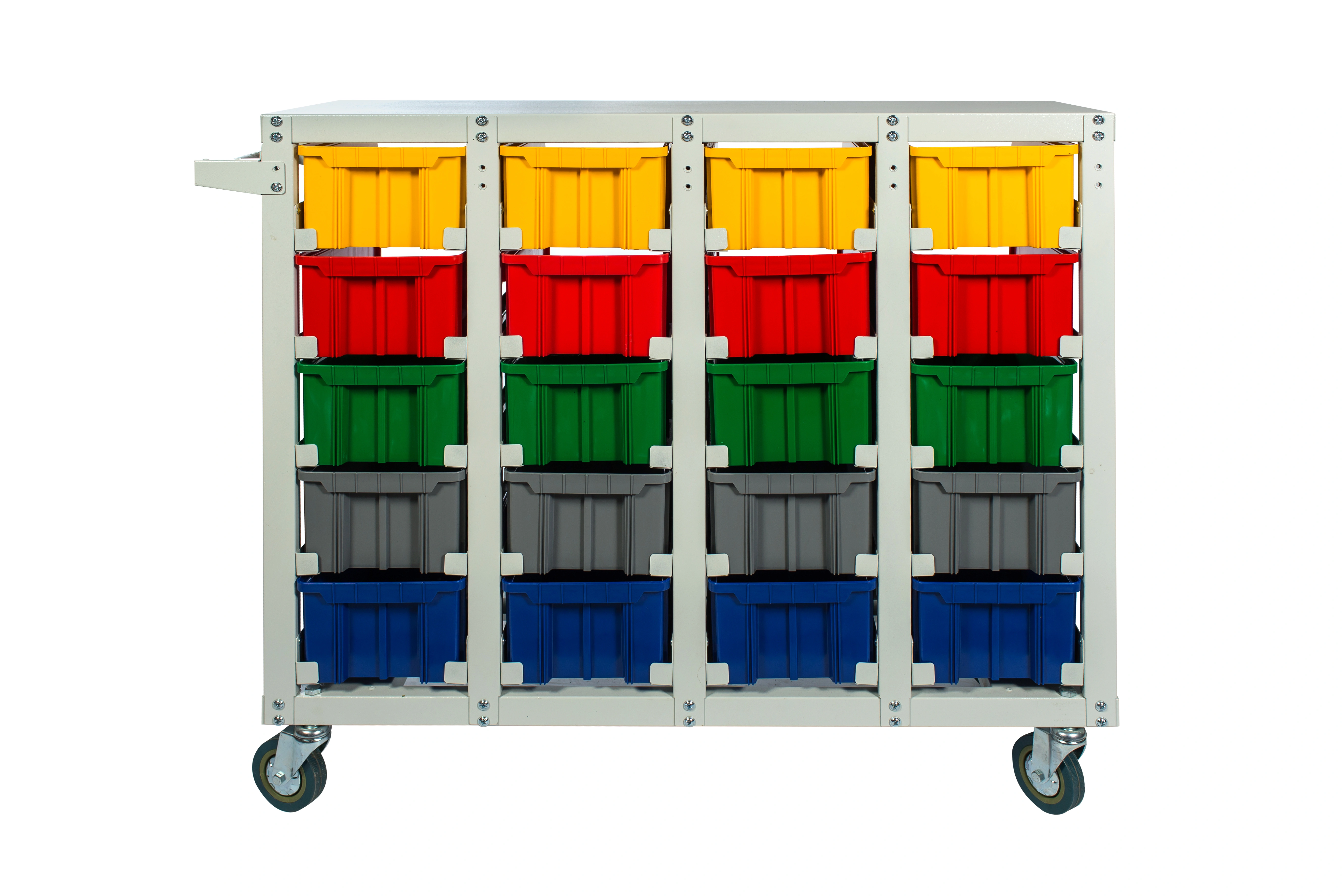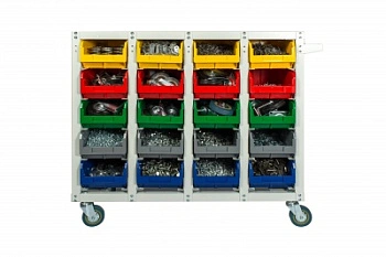 Стеллаж с направляющими мобильный односторонний V3-20 ячеек (125И), грузоподъемность 350кг. Предназначен для размещения контейнеров V-3 в отдельных ячейках на продольных направляющих. Подходит для эксплуатации в автомастерских, в строительных магазинах, на складах, где необходимо складирование мелкоштучных изделий и инструментов. При использовании вместе с колесами и ручкой, данный стеллаж становится мобильным, что значительно расширяет его функциональные возможности для перемещения вещей по территории предприятия, склада, цеха. Конструкция ящиков модели V3 обеспечивает быстрый и легкий доступ. Ящики открытого типа позволяют быстро находить нужные позиции, это возможно благодаря хорошему визуальному обзору содержимого. Конструкция стеллажа позволяет одним движением руки извлекать нужный ящик для его наполнения или опустошения, и так же легко устанавливать его на место. Стеллаж поставляется в разобранном виде и состоит из: металлического каркаса стеллажа с направляющими одностороннего V3-20 ячеек - 1 шт., ящиков пластиковых модель V-3 - 20 шт.; комплекта итальянских колес Tellure Rota, резина, сталь диаметром 150мм.; ручки. Температурный режим эксплуатации от +20 до +70С.