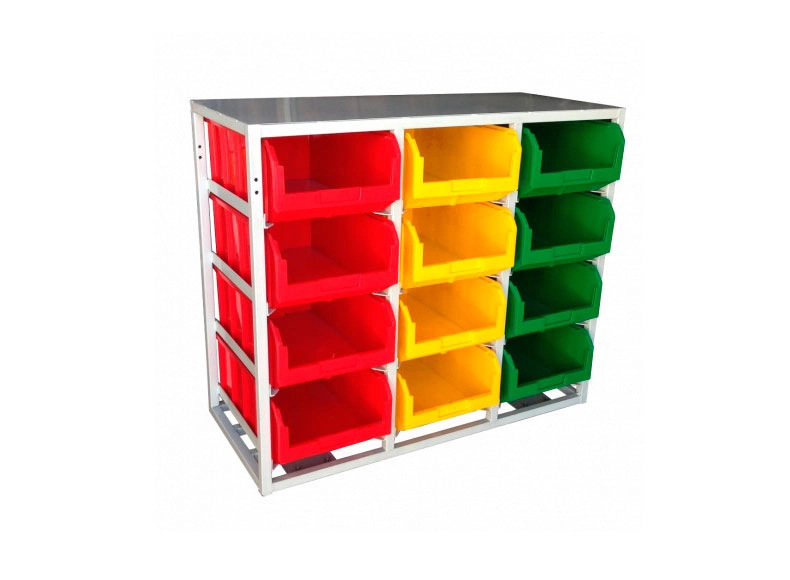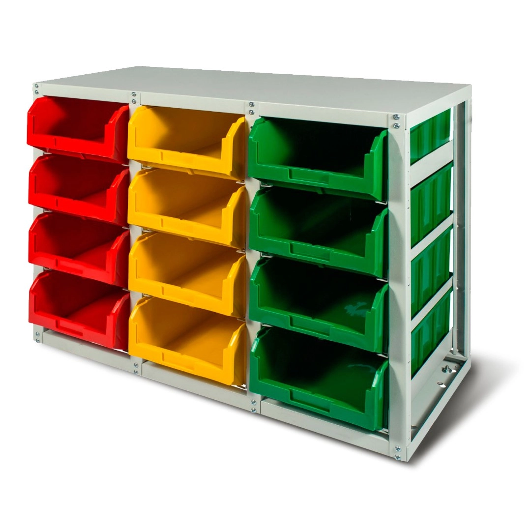 Стеллаж с направляющими односторонний V4-12 ячеек, грузоподъемность 480кг., предназначен для размещения контейнеров V-4 в отдельных ячейках на продольных направляющих. Подходит для эксплуатации в автомастерских, в строительных магазинах, на складах, где необходимо складирование мелкоштучных изделий и инструментов. Конструкция ящиков модели V4 обеспечивает быстрый и легкий доступ. Ящики открытого типа позволяют быстро находить нужные позиции, это возможно благодаря хорошему визуальному обзору содержимого. Конструкция стеллажа позволяет одним движением руки извлекать нужный ящик для его наполнения или опустошения, и так же легко устанавливать его на место. Стеллаж поставляется в разобранном виде и состоит из: металлического каркаса стеллажа с направляющими одностороннего V4-12 ячеек, ящиков пластиковых модель V-4 -12шт. Температурный режим эксплуатации от +20 до +70С.