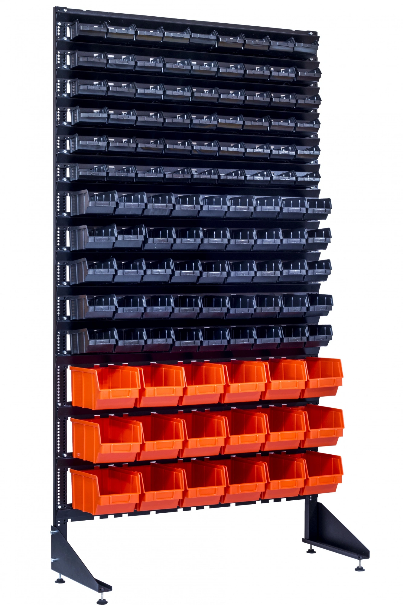 Складской стеллаж для магазинов, складских помещений, производственных предприятий и мастерских - представляет собой две вертикальные стойки с перфорацией и траверс для крепления ящиков разных размеров. Такой стеллаж предусматривает хранение автомобильных запчастей, крепежа, метизных изделий и комплектующих. Данную стойку можно поставить в качестве демонстрационной витрины на складе или в магазине. Незаменимые стеллажи для мастерских под различные гайки и крепеж.