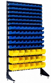 Стенд разработан специально для систематизации, хранения различных комплектующих, деталей, запчастей, крепежных и строительных материалов: болты, гайки, сверла, подшипники, метизы, фитинги, сантехника, зажимы, заклепки и т.д.