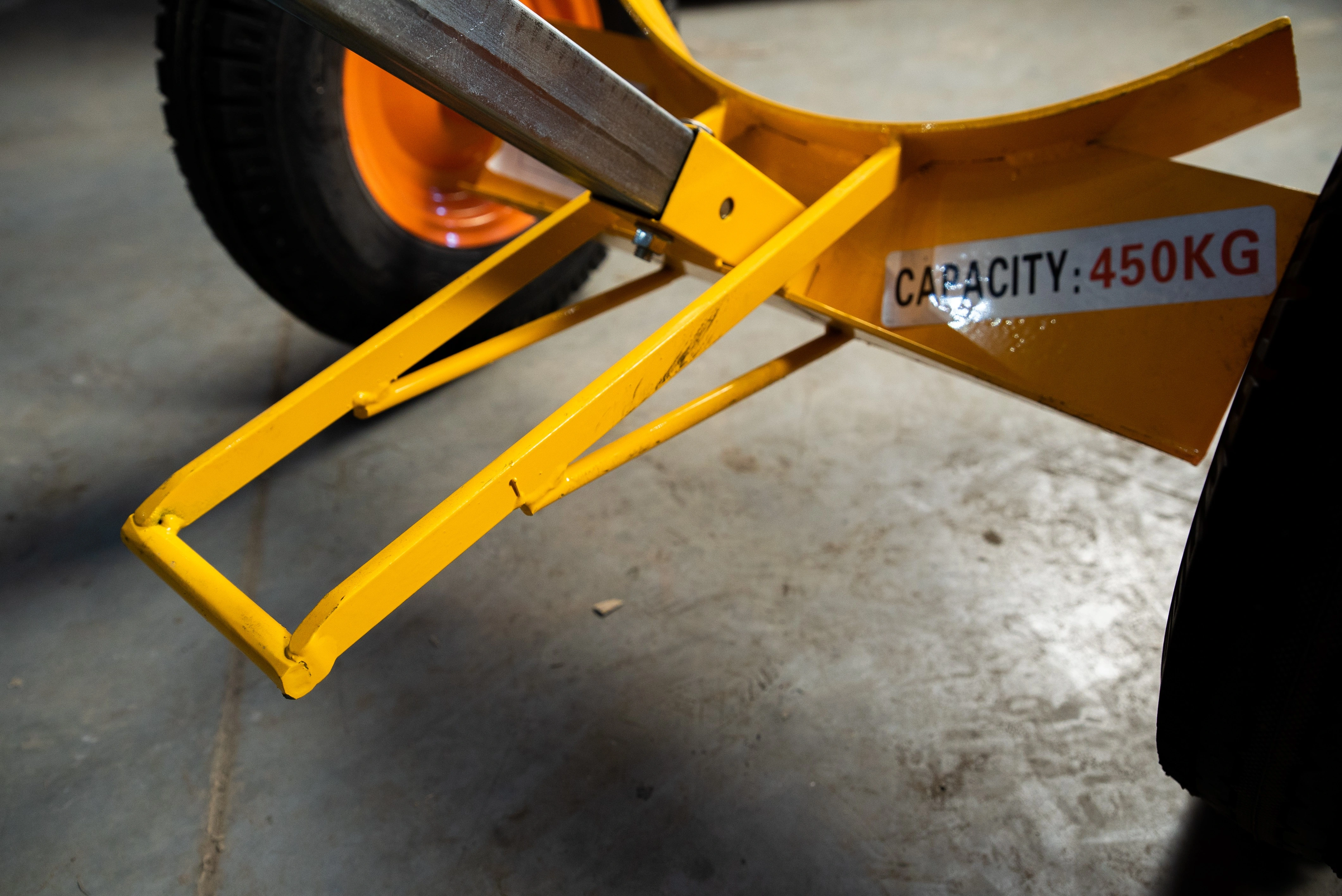 Тележка TORDE450 состоит из следующих элементов: металлическая прочная рама с ложем для бочки и упором, ручка с автоматическим фиксатором бочки, передвижной автоматический фиксатор кромки (под разную высоту бочки), двух пневматических колес. Грузоподъемность тележки составляет 450 кг – это позволяет перемещать все возможные виды грузов, тарированныхв бочки.Тележка для бочек TORDE450 – отлично подходит для перевозки пластиковых и металлических бочек. Простая конструкция тележки и автоматический зацеп позволяет очень быстро погружать бочку на тележку. Принцип действия захвата очень прост. Заводим нижнюю часть зацепа за кромку бочки, тянем тележку на себя создавая усилие на зацеп, верхняя часть которого автоматически прижимает верхнюю кромку бочки, полностью поднимаю бочку за кромку. Тележка TORDE450 состоит из следующих элементов: металлическая прочная рама с ложем для бочки и упором, ручка с автоматическим фиксатором бочки, передвижной автоматический фиксатор кромки (под разную высоту бочки), двух пневматических колес. Грузоподъемность тележки составляет 450 кг – это позволяет перемещать все возможные виды грузов, тарированныхв бочки. Приобретайте тележки в интернет-магазине eme54.ru, получайте гарантию от производителя. Все необходимые запасные части и колеса в наличии.