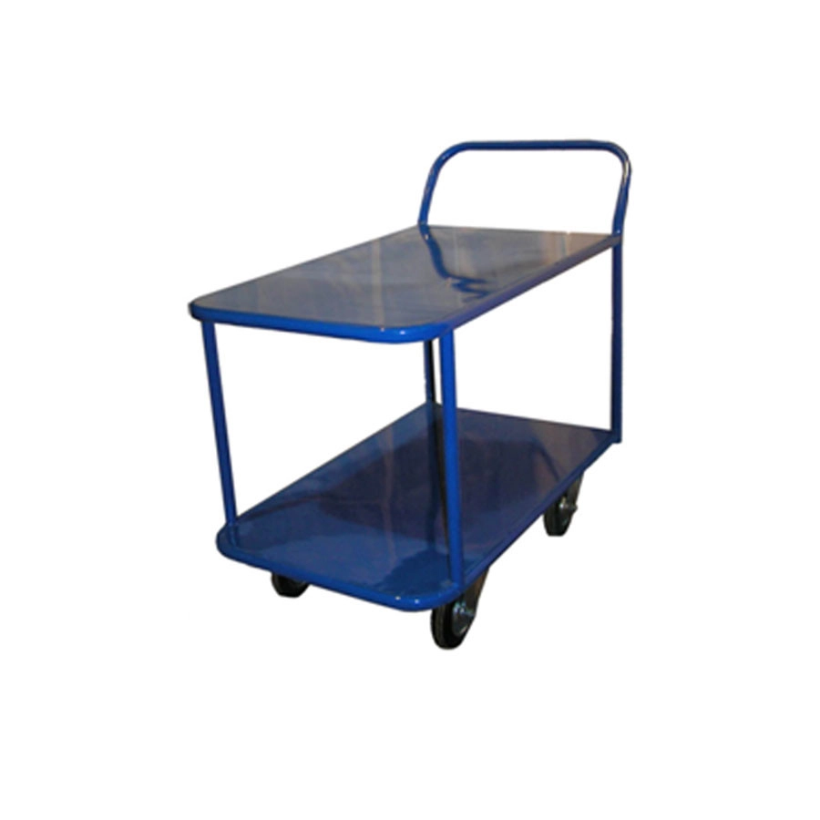 Платформенная двухъярусная 4-х колесная тележка КП-2 (2-х ярусная) используется для перевозки малогабаритных грузов. Платформы имеют металлический каркас накрытый металлическим листом толщиной 1,2мм. Размер платформы 700х1200мм. Расстояние между ярусами 480мм. Количество ярусов - два.Габаритная высота 1050мм.Покрытие металлических деталей тележки - полимерное. Цвет - синий.Тележка КП-2 (2-х ярусная) оснащена двумя поворотными и двумя неповоротными промышленными колесами из черной стандартной резины от всемирно известного, ведущего итальянского производителя Tellure Rota, диаметром 150мм, комплектом крепежа. Две платформы позволяют удобно расположить перевозимые предметы.Тележка широко используется на складах, в торговых павильонах, а также в гостиничном и ресторанном бизнесе. Грузоподьемность до 450кг.