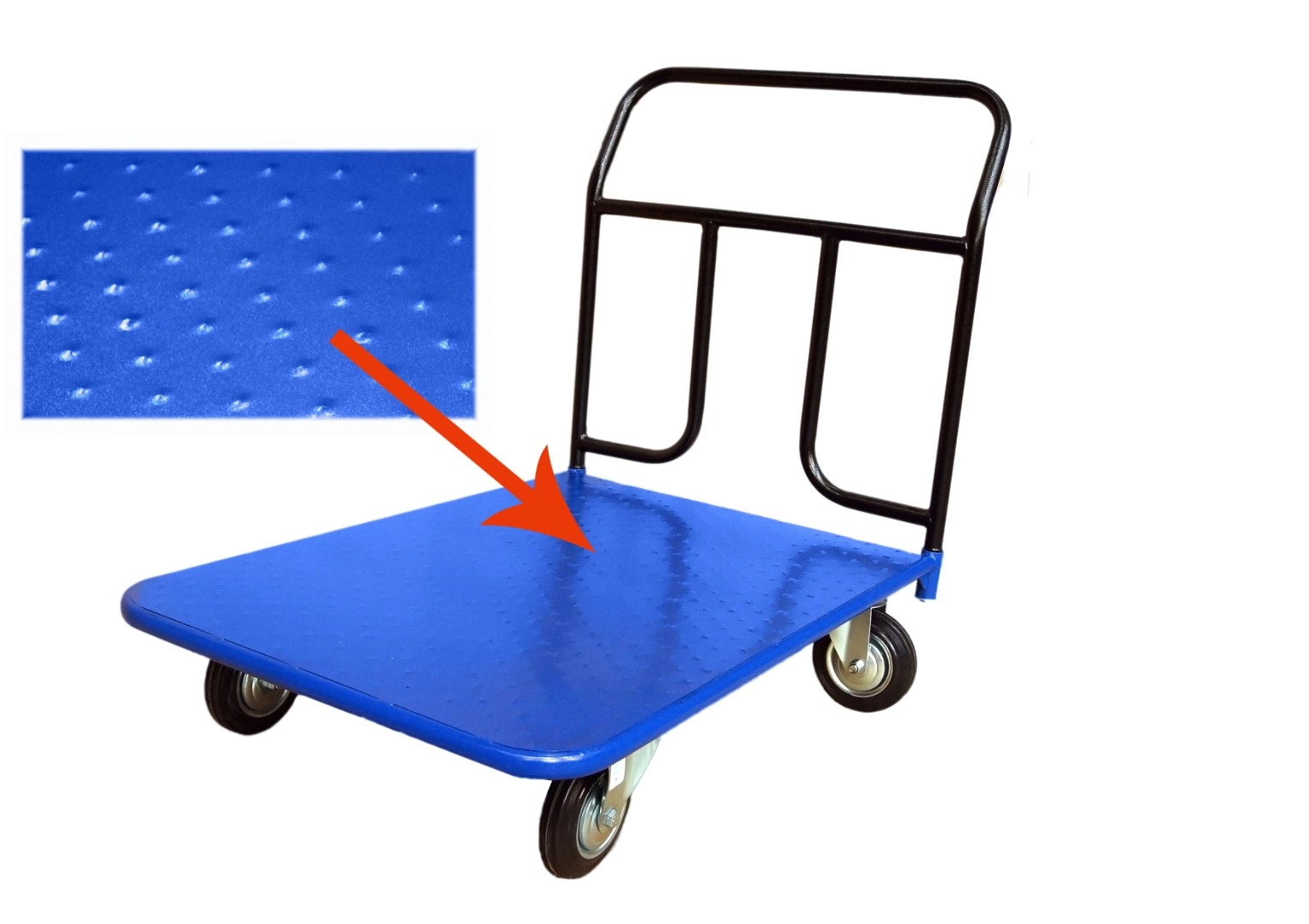 Платформенная 4-х колесная тележка КП-450-200-И используется для перемещения различных грузов в складских помещениях. Ручка крепится к платформе болтами, для компактного хранения можно снять, высота ручки 750мм. Платформа имеет уникальную рельефную, полимерную, противоскользящую поверхность, размером 700х1250мм. Цвет - синий, шагрень. Тележка комплектуется: метизами для крепления, двумя поворотными и двумя неповоротными промышленными колесами, диаметром 200мм., из черной стандартной резины, от всемирно известного, ведущего итальянского производителя Tellure Rota. Грузоподъемность до 690кг.