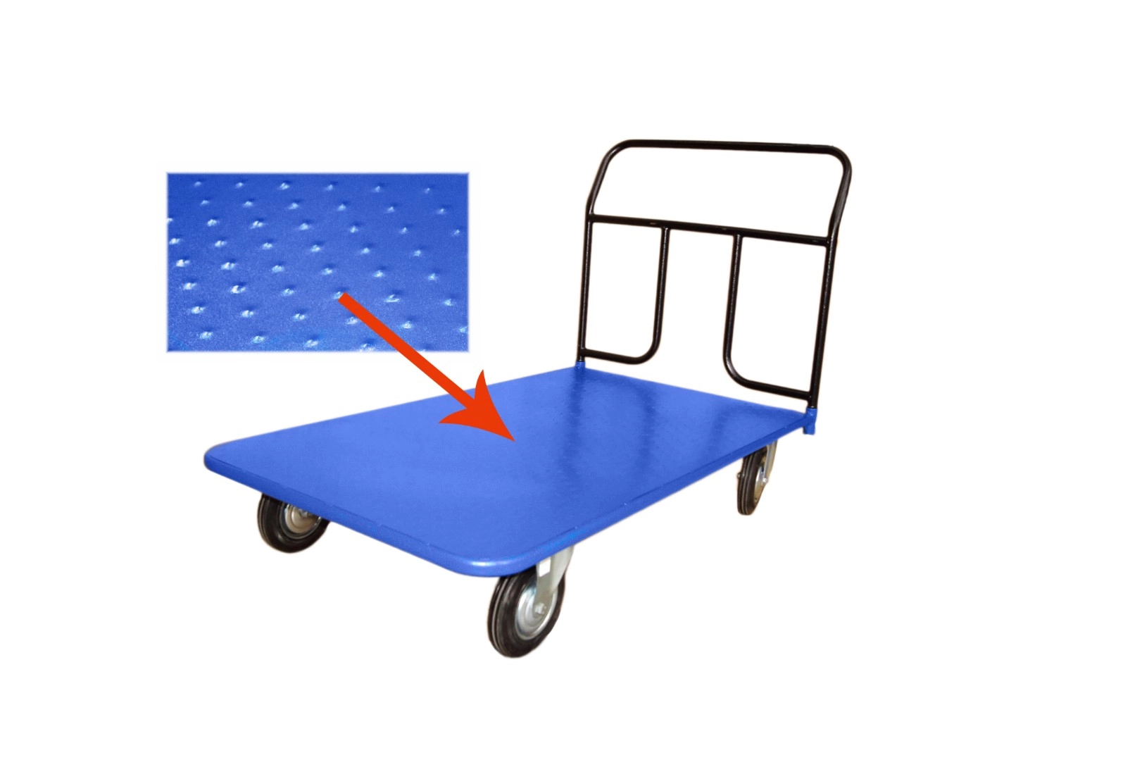 Платформенная 4-х колесная тележка КП-900-200-К используется для перемещения крупногабаритных и тяжелых грузов в складских помещениях. Ручка крепится к платформе болтами, для компактного хранения можно снять, высота ручки 750мм. Металлическая платформа изготовлена из стального листа толщиной 1,2мм., размер платформы 800х1500мм., покрытие полимерное, цвет - синий. Для легкого перемещения тележка КП-900-200-К комплектуется двумя поворотными и двумя неповоротными колесами, изготовленными из высококачественной литой резины, диаметром 200мм., комплектом крепежа. Большая платформа тележки позволяет перемещать крупногабаритные и тяжелые грузы. Грузоподъемность до 550кг.