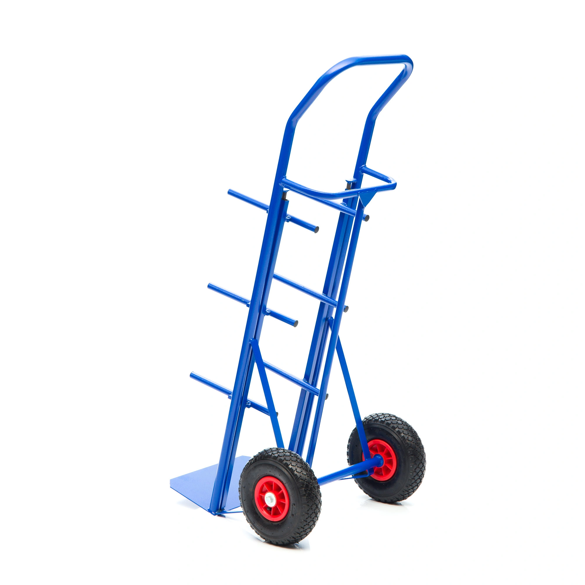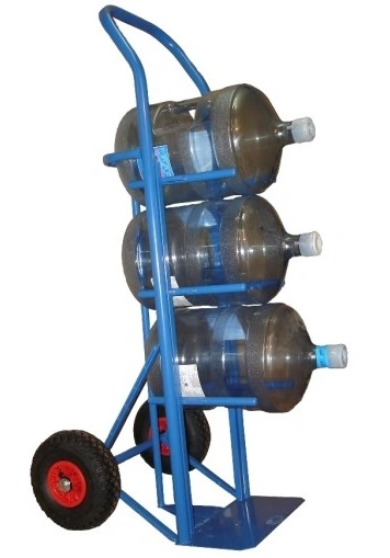 Тележка КДВ-55-пневмо-255 удобная модель для одновременной перевозки четырех баллонов (19 л.) с водой. На каркасе тележки установлены ряды перекладин и задняя планка для надежной фиксации бутылей параллельно земле (под небольшим наклоном). Баллоны кладутся друг на друга как на стеллаже, что позволяет вытаскивать каждый из них отдельно. Тележка КДВ-55-пневмо-255 упрощает доставку воды в офисы и на производства. Корпус модели из прочной нержавеющей стали. Покрытие полимерное. Цвет - синий. Тележка комплектуется: метизами для крепления, пневматическими колесами на полипропиленовом сердечнике с протекторной покрышкой, диаметром 255мм. Грузоподъемность до 200кг.