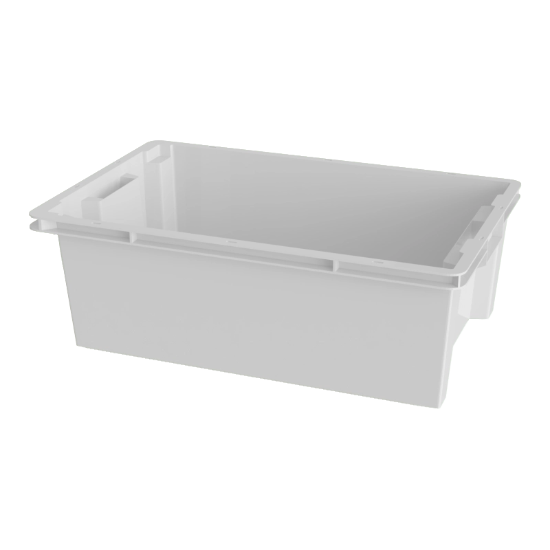 Пустые ящики вкладываются друг в друга, экономя места до 60% при транспортировке и хранении. Устойчиво штабелируются друг на друга при повороте на 180 градусов.